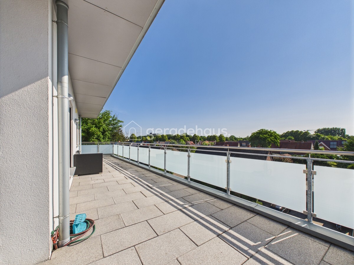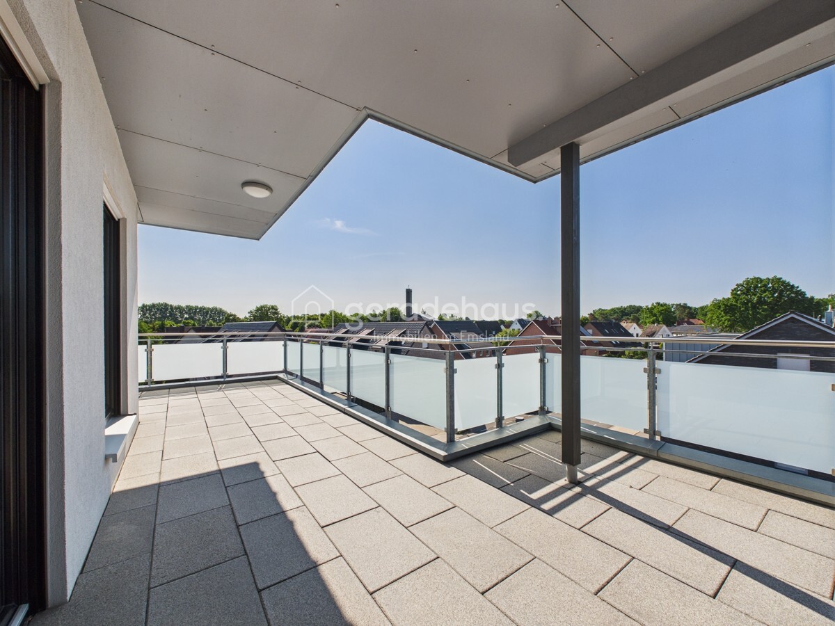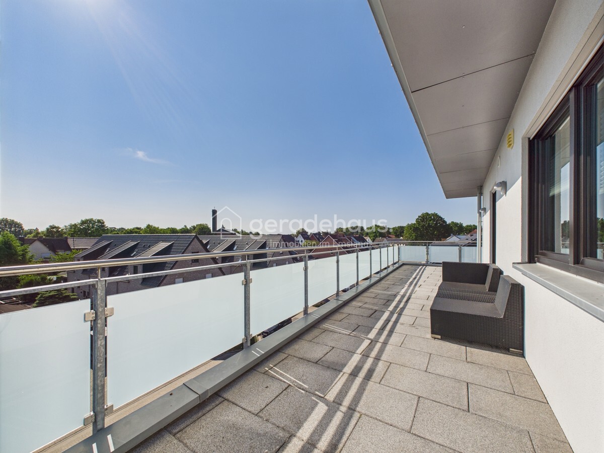 Die sonnige Dachterrasse mit Ausblick auf den Emsauenpark ist das Highlight dieser Wohnung – ein Ort für Ruhe, Genuss und Rückzug inmitten der Stadt.